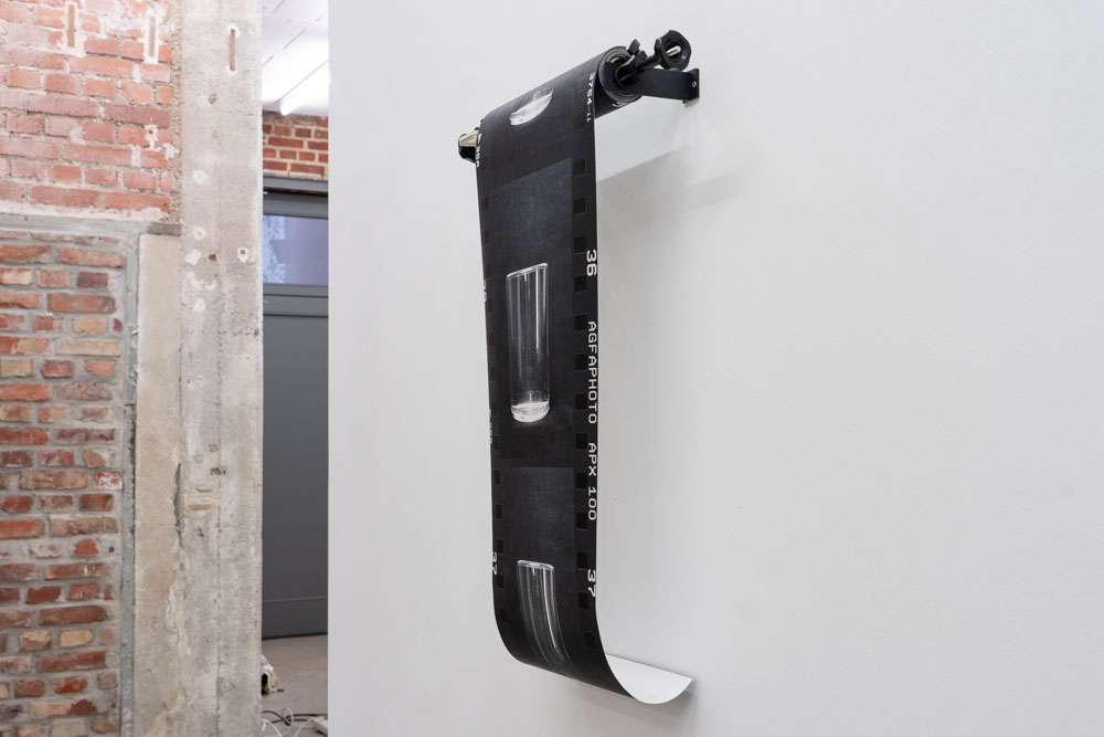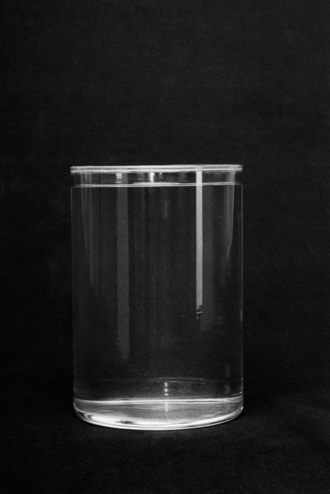 Durch die Belichtung scheint das Glasgefäß ohne Wasser eine uneindeutige Abgrenzung zu haben. Erst durch die Füllung formt sich das Glas und dessen Grenzen.